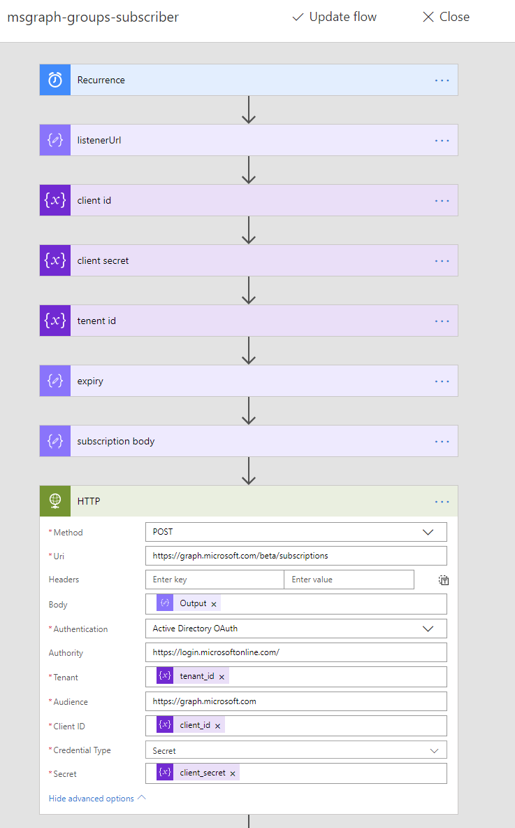 Setting up MSGraph Webhook with HTTP Action in MicrosoftFlow