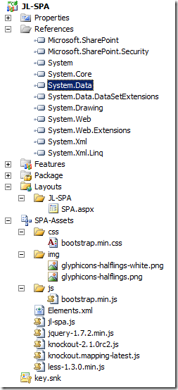 - Deploys to /_layouts/JL-SPA/SPA.aspx - one single page!