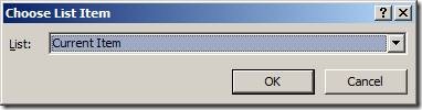 Start with the second parameter which is the easier one. Click on “this list” and select Current Item