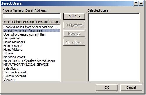 Select “Workflow Lookup for a User…” and click Add