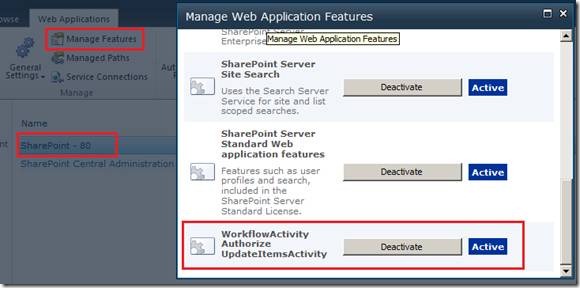 \TEMPLATE\1033\Workflow\WorkflowActivity.ACTIONS entry needed in Web.Config - I’ve included a Web Application feature that will do this