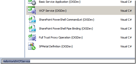 Add New Item, and select WCF Service (CKSDev)