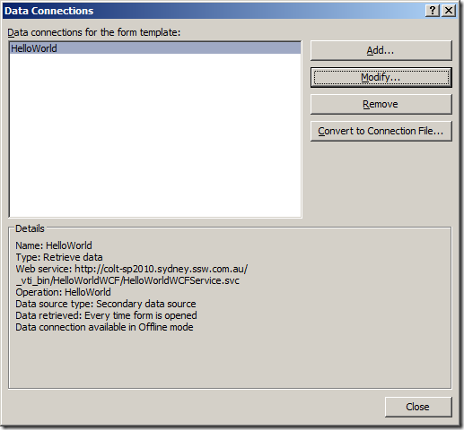 Connect Via InfoPath