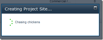 Create an array of status messages - these (aside from the chicken) are really what the REST service is doing. I also create a function p, which choses a random message and updates the waitDialog. Repeat every second. When the AJAX call completes, it destroys the waitDialog, and set it to null. This stops the setTimeout loop.
