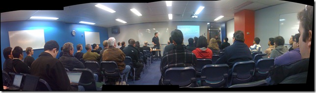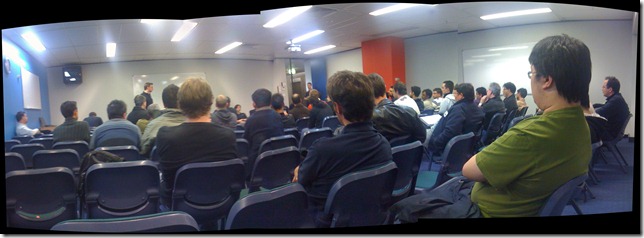 With my talk out of the way I juggled the rest of the day between: helping out people wandering around looking slightly lost, or wanted to catch up on some examples of Silverlight applications. Ducking into sessions (usually at the 10minute mark where there’s no one wandering outside anymore), to either learn something new, see how others present, or just to heckle another speaker and cheer them on!