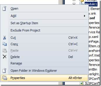 This step ensures that the Silverlight project output (XAP file), is automatically included as an element file in your SharePoint module.