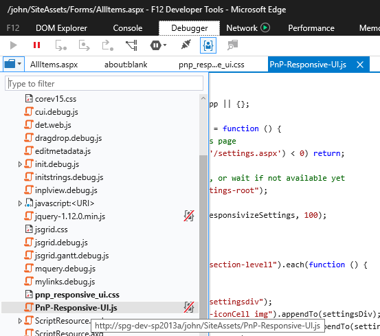 Url: SiteAssets/PnP-Responsive-UI.js