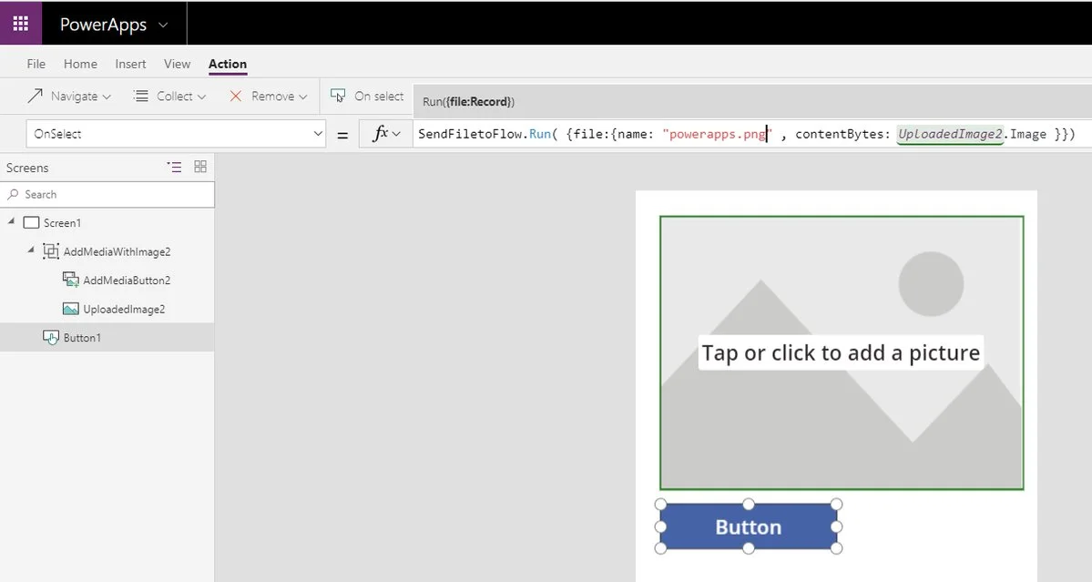 We are going to take a Flow Button and hack it into a PowerApps trigger to send Files from PowerApps to Flow.