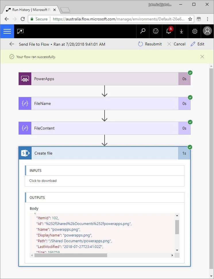 Until that day - this method is possibly the simplest way to send any binary files from PowerApps to Flow. Because this method doesn’t need custom connections - you might find this useful in not hitting your Flow plan limit of 1 custom connection.