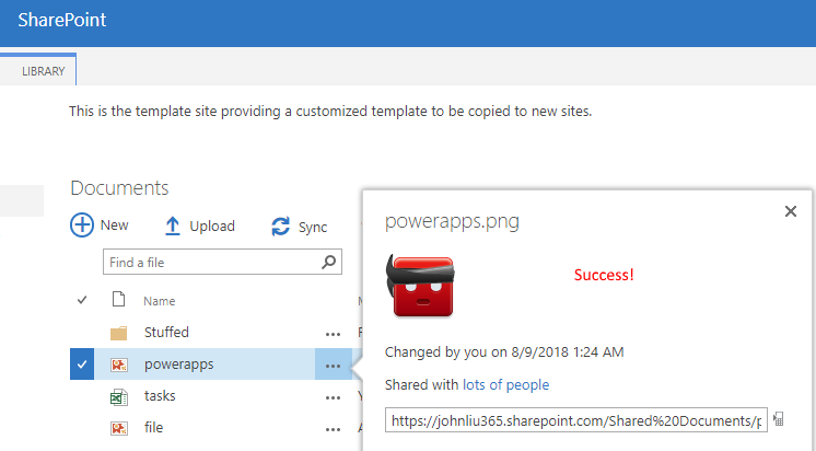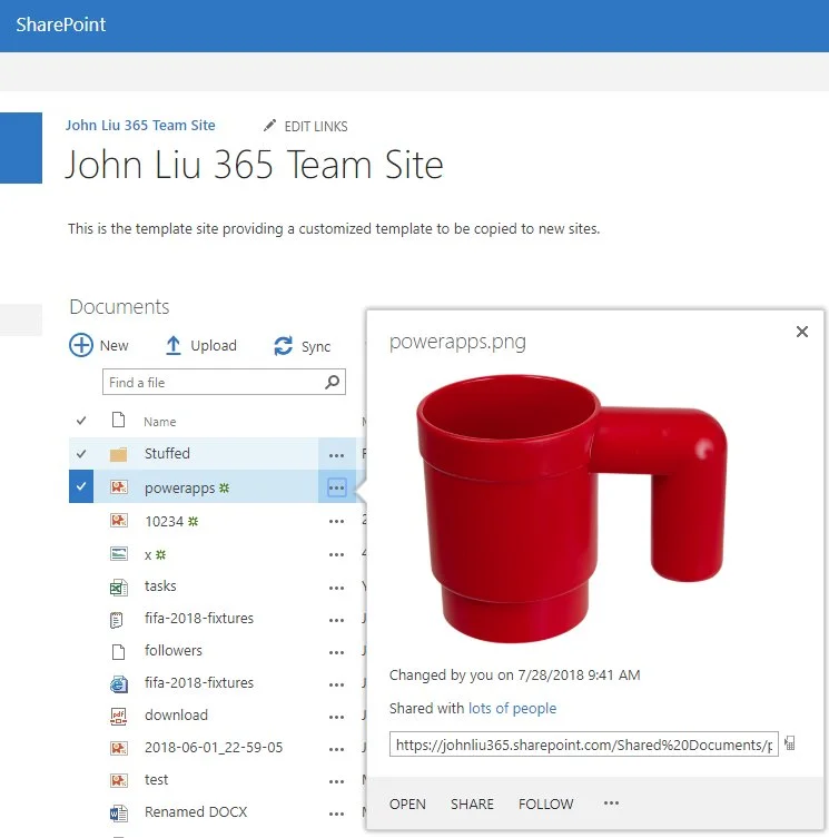 And the result - LEGO 851400 cup is uploaded to SharePoint via Binary. No Swagger.
