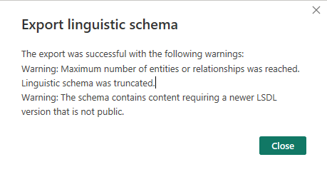 I tried to export the Linguistic schema (beware this is a YAML file) to see what’s wrong with the model, and that’s when I got this new error message.