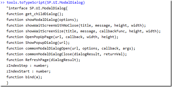 Why is this related to SharePoint? Well, javascript files provided in SharePoint are actually quite rich in meta data and could potentially be used to reverse engineer the TypeScript Definition Files.