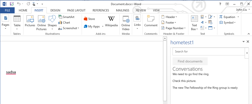 Here it is. The same addin working on desktop - talking to Microsoft Graph and showing Group Conversations